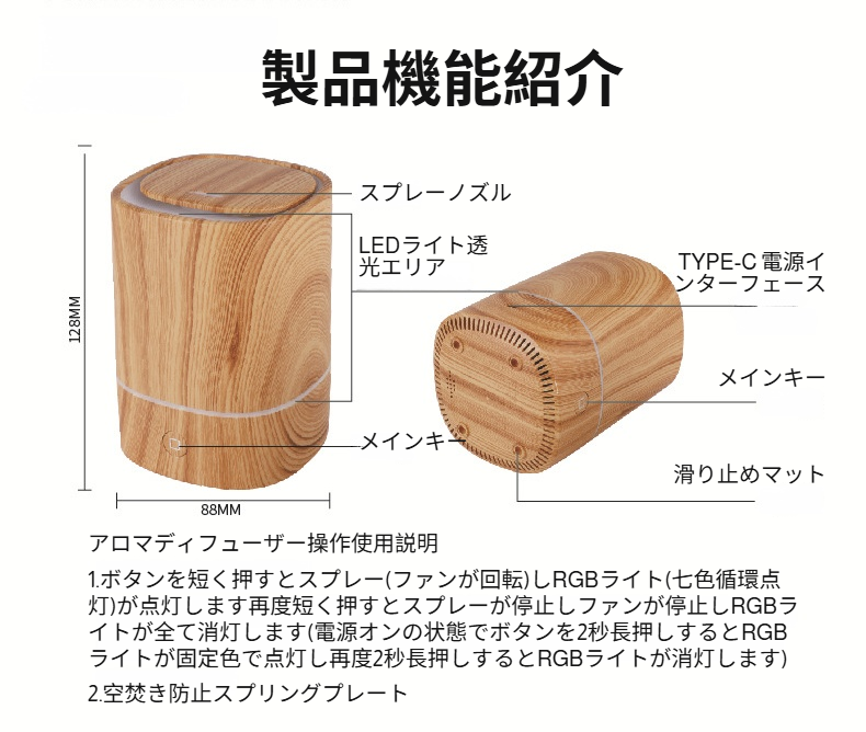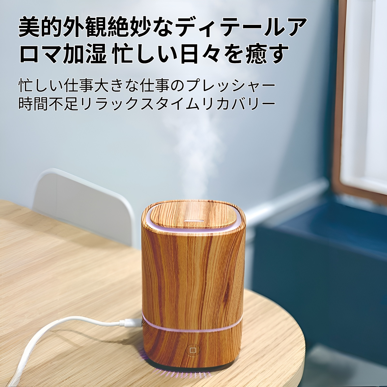 新しい空気加湿器USB車オフィス木目調アロマセラピーマシン超音波スプレー家庭用清浄機